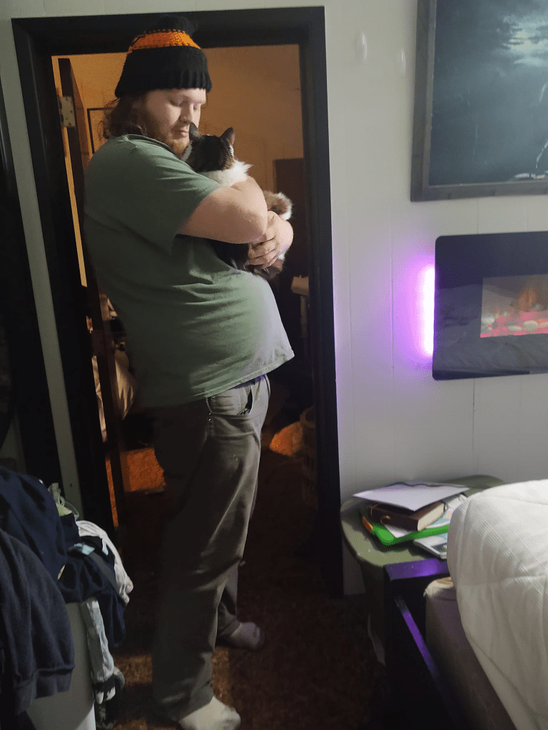 (Seth, with my deceased cat, Peaches. 2022)
