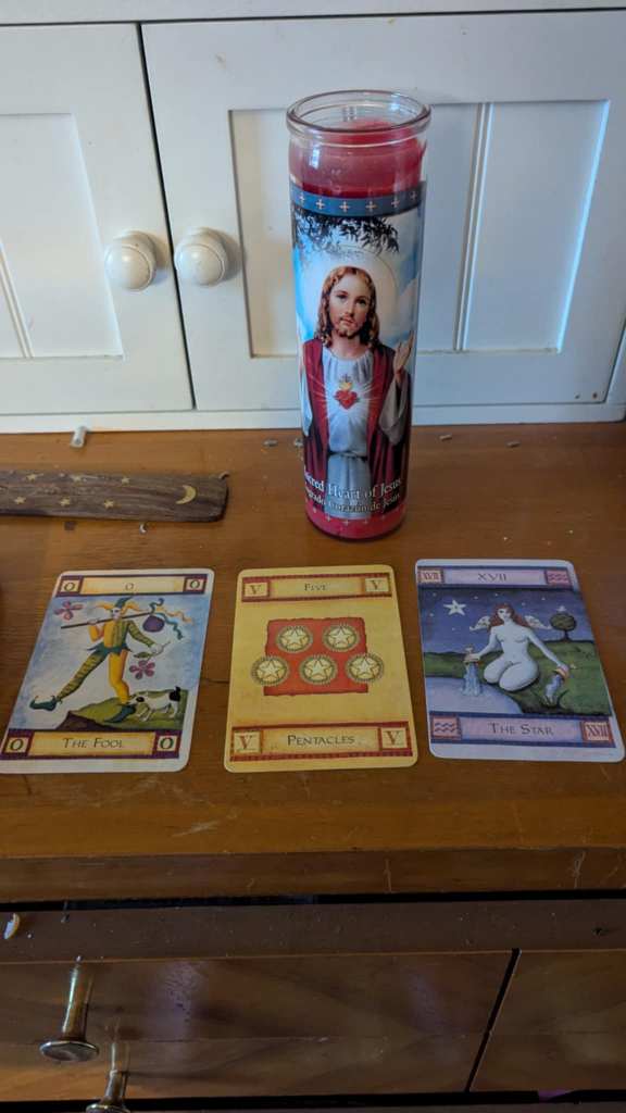 I did a prayer with Jesus Christ using a red sacred heart candle and tarot cards. I asked a lot of questions that I won’t get all into because of things in my personal life, I’ll only give an overall summary of the cards that I pulled: